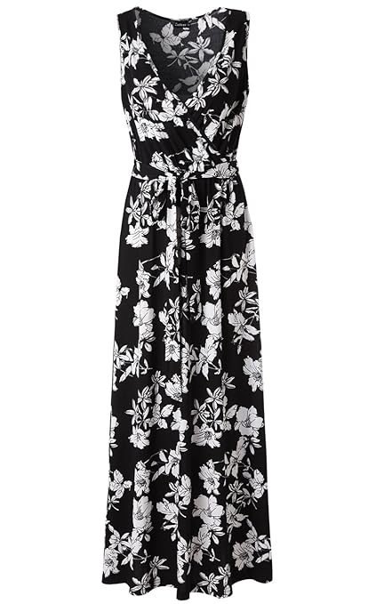 $27.99 Zattcas Womens V Neck Sleeveless Empire Waist Floral Maxi Dress