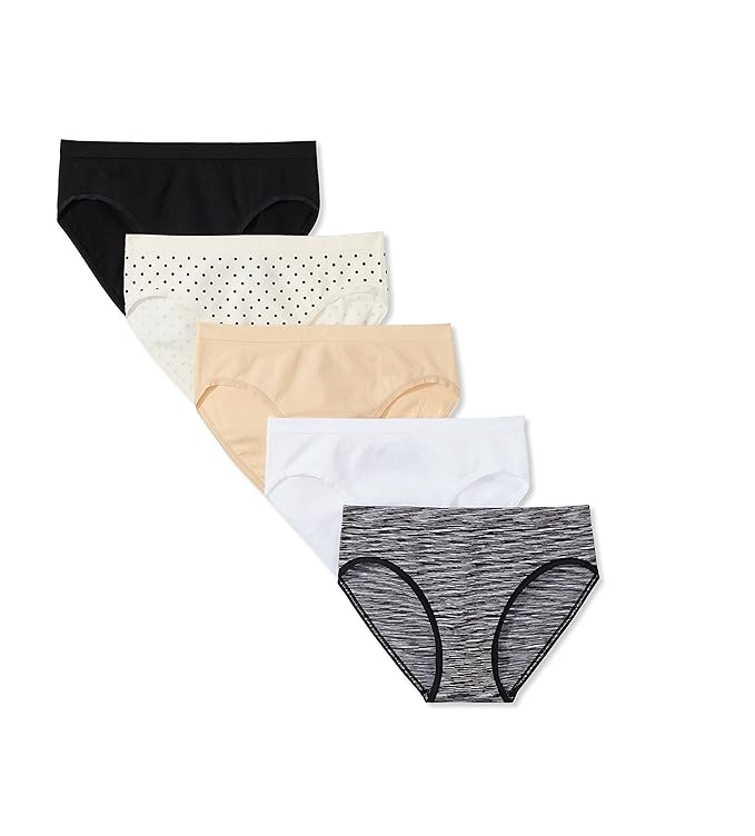 An Amazon brand - This underwear set includes five seamless panties in a bikini-cut silhouette and super-smooth fabric with four-way stretch.