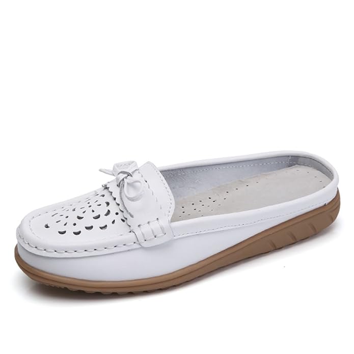 $14.99 Women's Hollow Leather Backless Lazy Loafers Flats