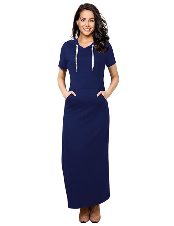 $24.88 Women Short Sleeve Pullover Stripe Pocket Slim Sweatshirt Casual Hoodie Dress Hooded Sweater Dresses