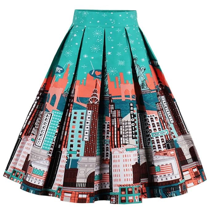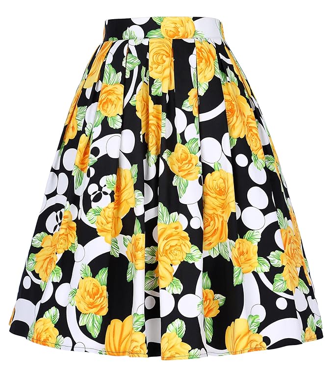 $16.99 Dressever Women's Vintage A-line Printed Pleated Flared Midi Skirts