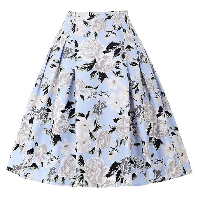 $14.99 GRACE KARINWomen's High Waist Pleated Floral /Plain Vintage Skirts