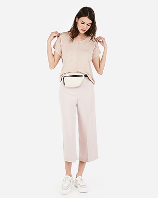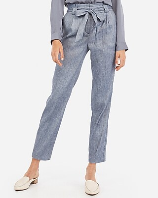 High Waisted Linen-Blend Sash Tie Ankle Pant