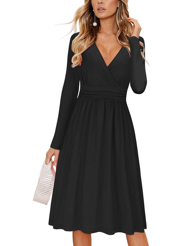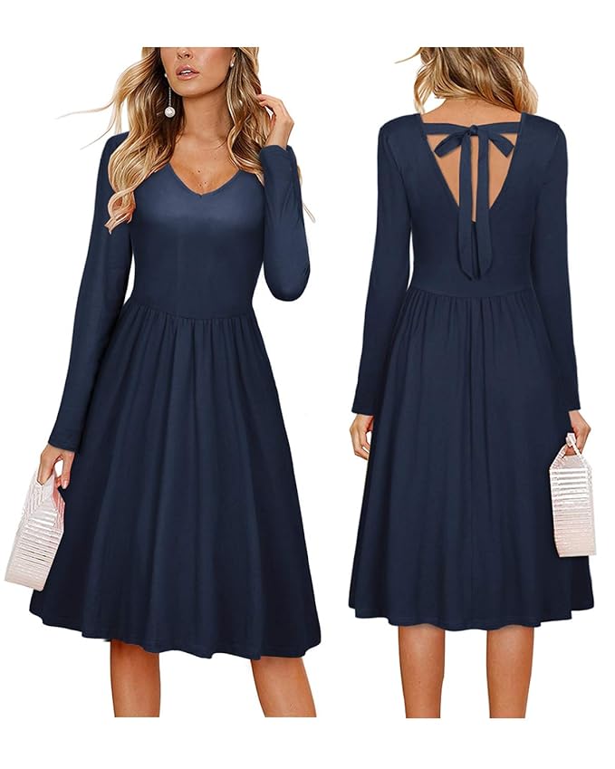 2.A-line casual dresses features cross v neck design, is simple but elegant and classy.