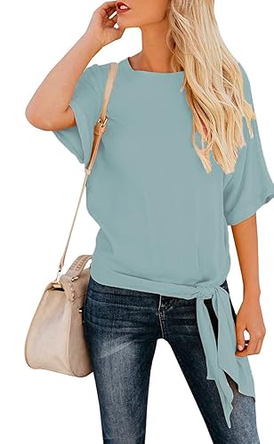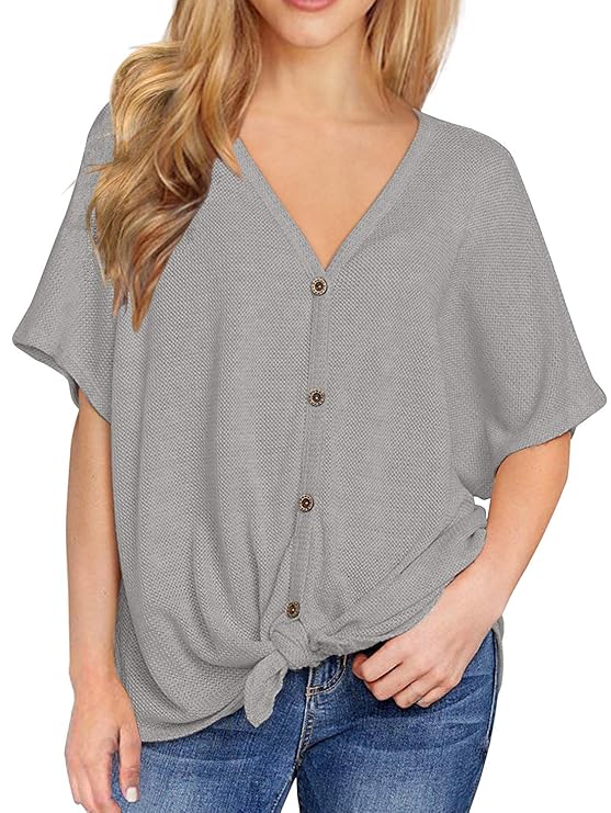35% Rayon, 60% Polyester, 5% Spandex. This tops is lightweight and super soft and perfect for all seasons, it's stretchy and fits all shape.Casual and Chic Style,Short Sleeve,V Neck,Ombre Colors,Stretch,High Low,Side Split Details.Women Tops,Simple,Chic And Delightful Top For Spring,Summer,Fall And Winter.Perfect For Junior,Travel,Work,Home,Dairy,School,Date.Basic blouses/tops/shirts,perfect to wear with leggings,pants and shorts and etc.Please attention the size chart in the picture is the actual length of clothes, Select the size according it. Amazon Size Chart is not ours.