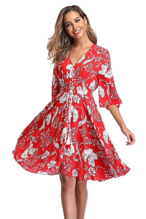 $28.99 VintageClothing Women's Floral Sundresses Flowy Boho Summer Beach Dress Button Up