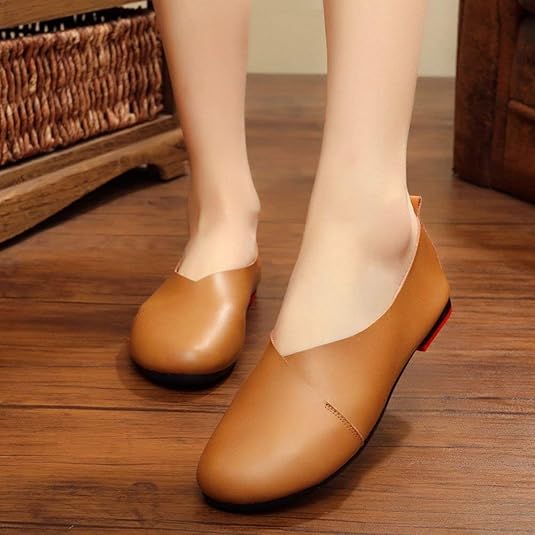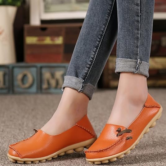 KEESKY Womens Ladies Leather Casual Cut Out Loafers Flat Slip-on Shoes Red Size 7