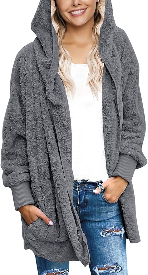 ACKKIA Women's Casual Draped Open Front Oversized Pockets Hooded Coat Cardigan