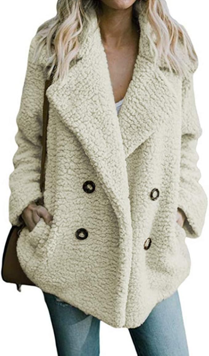 Ablanczoom Women's Coat Casual Lapel Fleece Fuzzy Faux Shearling Button Warm Winter Oversized Outwear Jackets with Pockets