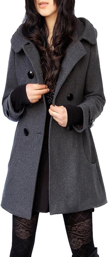 Tanming Women's Winter Double Breasted Wool Blend Long Pea Coat with Hood
