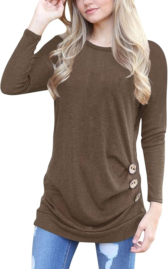 $16.99 OURS Women's Casual Long Sleeve Round Neck Solid Loose Fit Tunic Shirt Blouse Tops