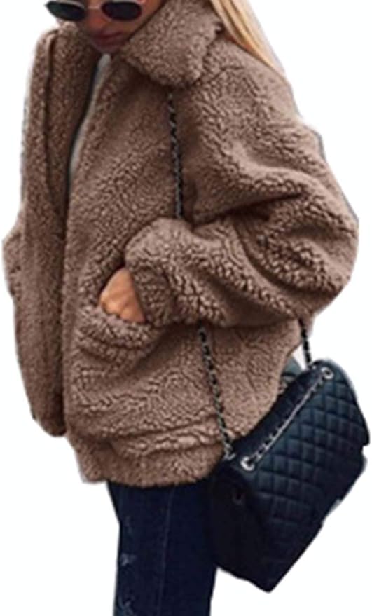 $27.99 $79.99 SHIBEVER Fluffy Women Coats Faux Wool Blend Warm Winter Jacket Zip Up Long Sleeve Oversized Fashion Outerwear