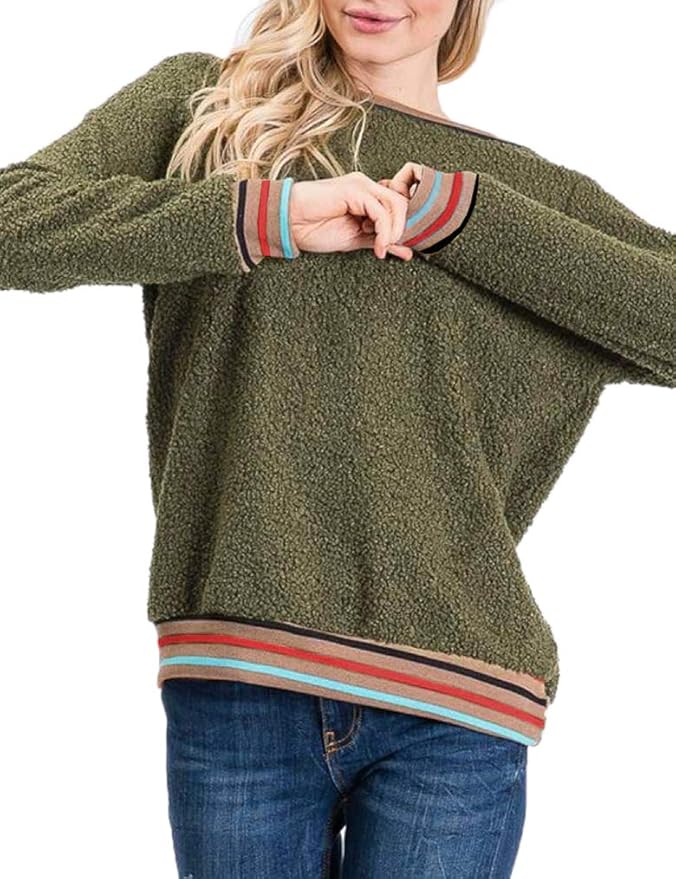 $28.99 Shawhuwa Women's Casual Crewneck Long Sleeve Fleece Pullover Sweatshirts Solid Color Fuzzy Warm Outerwear Tops