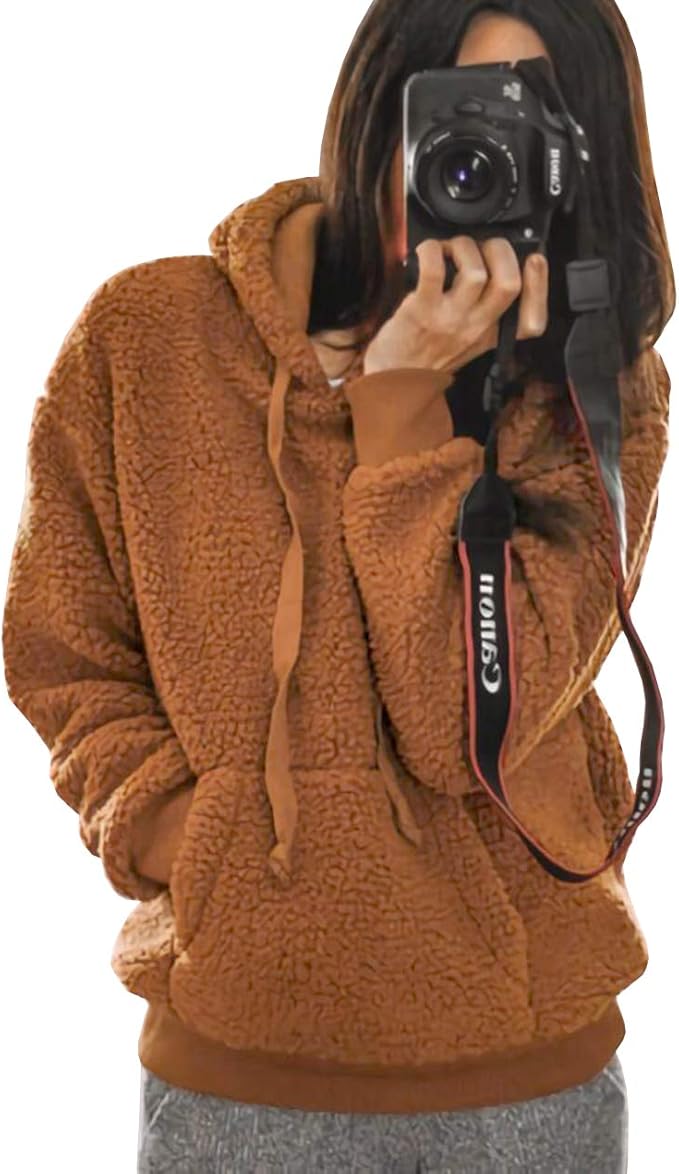 $25.99 KIRUNDO 2019 Winter Women’s Fleece Hoodies Sweatshirts Long Sleeves Shaggy Pullovers with Pockets Short Tops