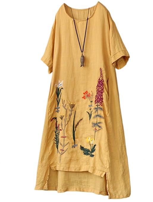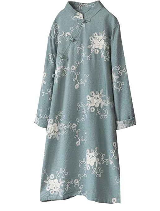 A line long sleeve tunic dress, Chinese frog button design,loose swing midi dress, casual shift dress with pocketsUnique floral print design, knee length dress with loose hem and waist, great for pregnant women;Nice for casual daily wear, relaxed holiday, dating, wedding, party, beach, vocation and any other occasion.With this elegant tunic dress, you can pair it off with your choice of footwear to bring out the look you want;Great pair with boots, heels and so onA-line cotton linen dress for women,womens linen dresses,plus size clothing for women,linen tunics for women,womens ethnic dresses, cotton linen dress for womenNOTICE: Please read the Size Chart in the Picture and the Product Description Carefully before ordering (Not the Amazon size chart)