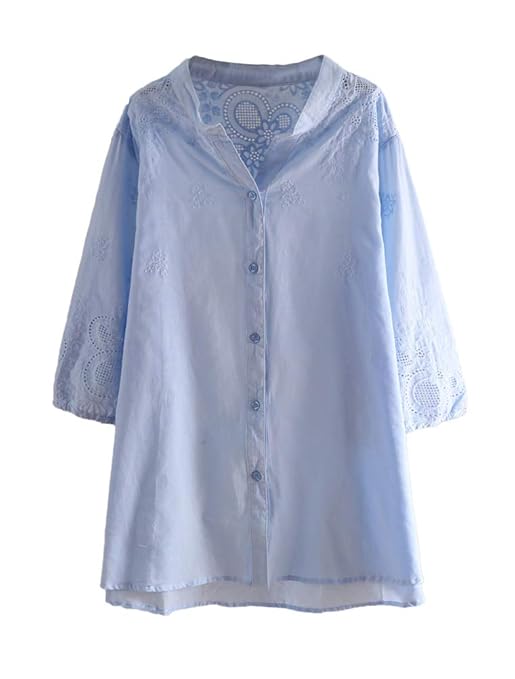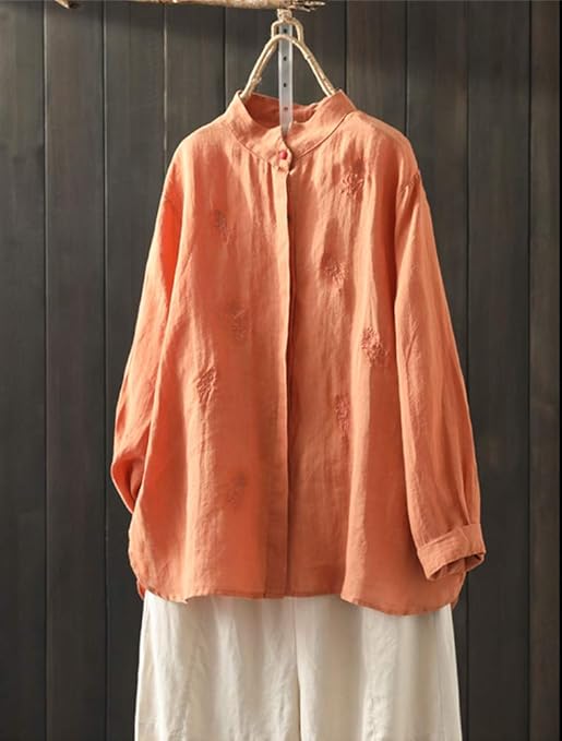 Solid color texture pattern linen tops, round neck, long sleeves, hi-low hem with button down closure and tunic lengthBeautiful embroidered flower, A-line design, cotton linen tunics for women, causal solid tops,simple and elegantLightweight and breathable cotton linen, suit for fall, solid color, have four color for you choose, plus size women topsSuit for shopping, dating, beach, party, or any occasions in autumn, it's leisure, daily, casual style shirts topsHigh low tops for women, linen shirts for women,embroidered blouse tops for women,new fall cotton tunics,linen button down shirt women