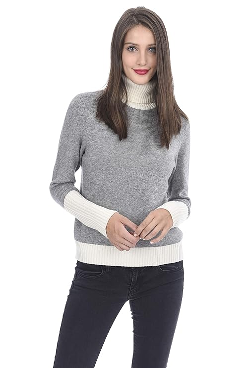 $132 $150 Mix Knit Turtleneck Sweater 100% Pure Cashmere Contrast Wide Rib Pullover