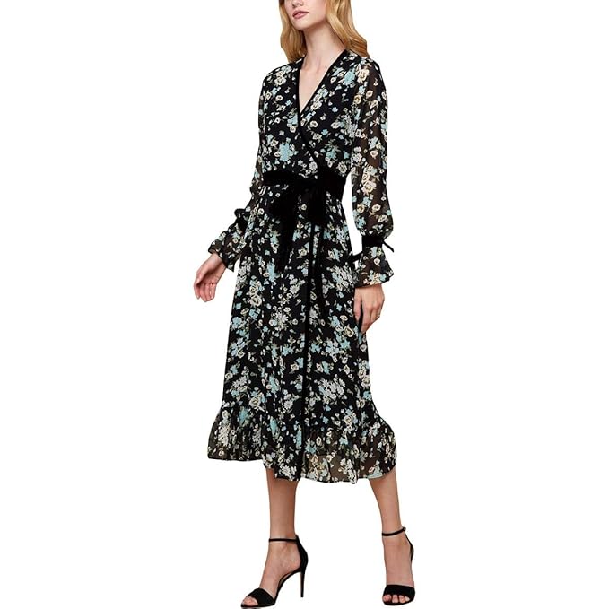 Juicy Couture Black Label Women's Autumn Floral Flounce Wrap Midi Dress