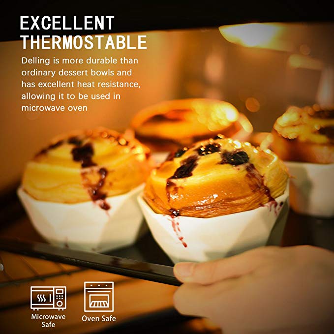 Special design for ramekins/dessert bowls with sensible style. Not just bowl set in your cupboard, but also artwork to decorate your home. —-Sturdy ceramic bowl must the super star in your tableware when you have friend!