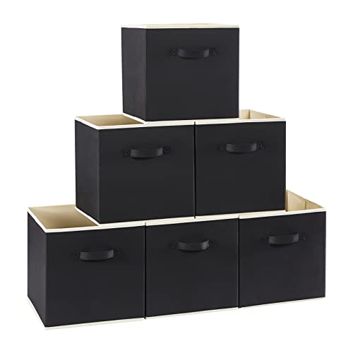 Complementary Decor: With a choice of 3 neutral hues - grey, beige and black, these chic, fashionable and collapsible storage cubes are designed to match and blend with interior decors of any home effortlessly.Quality Construction: With high quality non-woven fabric and cardboard insert that has been precision stitched, these storage bins are firm and durable for prolonged use. All materials are bio-degradable and safe to use.2 Size Options: With 2 size options (pack of 6), you can rest assured that these storage organizers will fit into most cabinet sizes and tastefully fuse into your room decor. Medium:10.5'' x 10.5'' x 11'' (26.5 x 26.5 x 28cm), Large: 13'' x 13'' x 13'' (33 x 33 x 33cm).Multipurpose: These storage baskets can be placed in the living room or bedroom to store sundries, toys, magazines and more. Neutrally designed to adapt with your decor, this is a great addition to save space and stay organized.Practical Design: With its simple foldable design, the storage boxes stand firm and upright when used and can be collapsed and stored away instantly when not in use.Warm neutral color choices will also complement and match with all cabinet colors.
